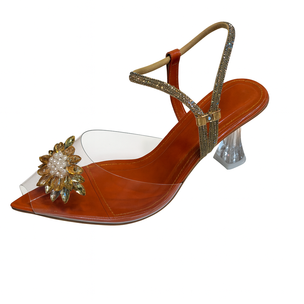 Step out with confidence in the Amber Crystal Embellished Heels from ZivaWalk. Made with quality synthetic materials and sparkling crystals, these amber brown heels feature a comfortable 3-inch transparent block heel and secure rhinestone straps. The anti-slip sole ensures steady steps. Perfect for weddings, festive events, and parties, they blend traditional beauty with modern style to support your graceful presence.