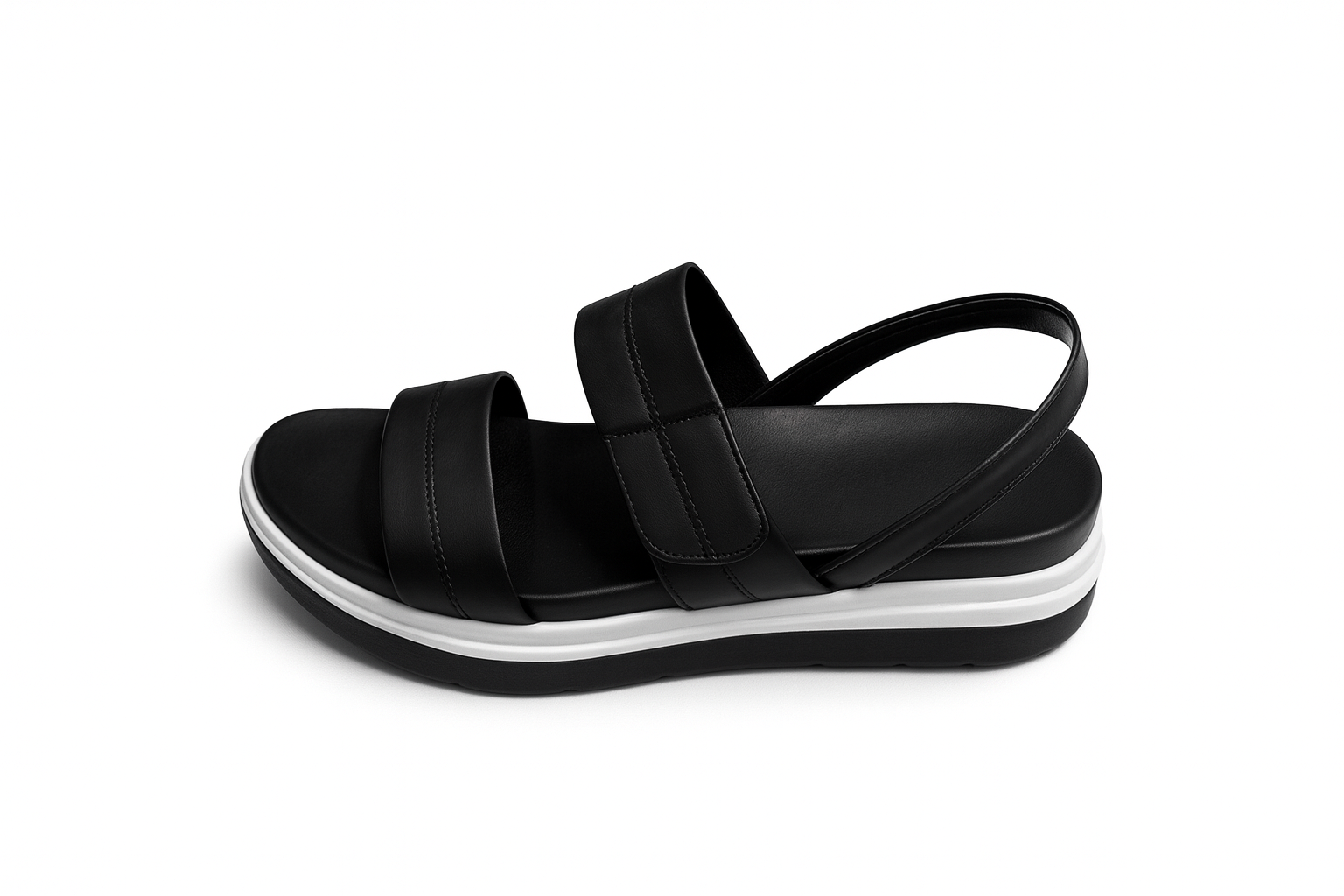 The ZivaWalk Black Double Strap Slingback Sandals offer a simple, comfortable design with two straps and a slingback for support. Featuring a soft cushioned insole and a lightweight sole, they keep your feet comfortable all day. Their black color with a white midsole suits casual and semi-formal outfits, making them perfect for daily wear, travel, and city walks. Easy to slip on and true to size, these sandals are a versatile addition to your wardrobe.