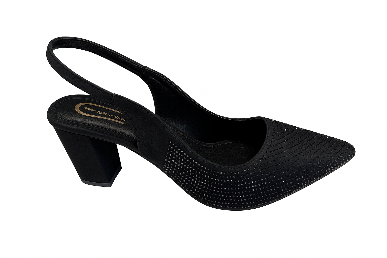 Step into style and comfort with the ZivaWalk Black Rhinestone Slingback Block Heel Pumps. Featuring a pointed toe, sparkling rhinestones, and a secure slingback strap, these 3-inch block heels offer both elegance and stability. Ideal for weddings, parties, or evening events, they pair perfectly with dresses and gowns for a chic, polished look. Crafted for those who appreciate subtle sparkle and classic black sophistication.