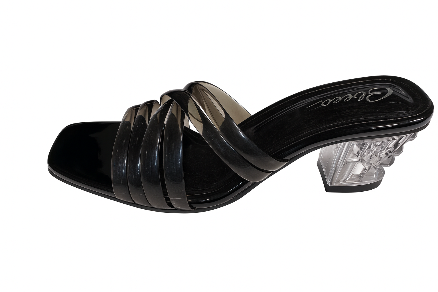 The ZivaWalk Black Transparent Multi-Strap Block Heels feature clear glossy PVC straps and a crystal-inspired block heel for a stylish, modern look. Their multi-strap design ensures a secure fit, while the cushioned sole offers comfort for extended wear. These versatile heels are suitable for formal events, evenings, and parties, pairing well with dresses or tailored outfits. A sophisticated and comfortable choice to enhance your wardrobe.