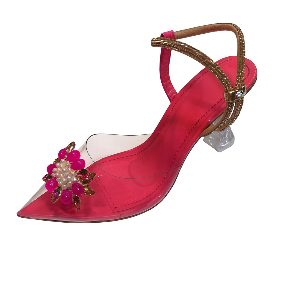 Step out with confidence in the ZivaWalk Fuchsia Crystal Embellished Heels. These vibrant fuchsia heels feature sparkling crystal straps and a transparent block heel about 3 inches high. Made with premium materials and a non-slip sole, they offer a true-to-size, comfortable fit. Perfect for weddings, parties, and special occasions.