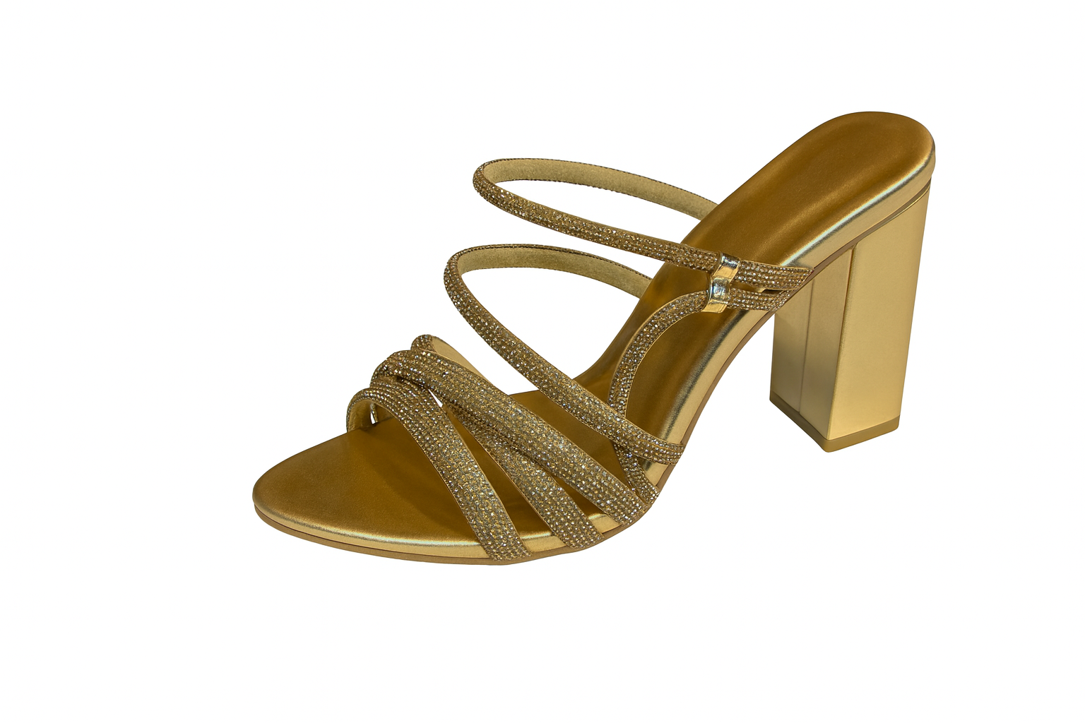 Step into style and comfort with the Golden Crystal Strap Block Heel Sandals by ZivaWalk. Featuring crystal-embellished gold straps and a sturdy 3.5-inch block heel, these slip-on sandals offer a perfect fit for weddings and festive occasions. Their elegant design pairs beautifully with lehengas, gowns, or party dresses, ensuring you look and feel your best all evening.