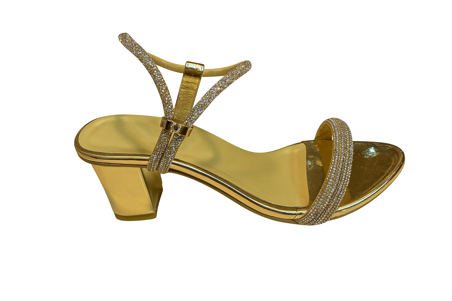 Step out with confidence in the Golden Sparkle Crystal Strap Block Heels by ZivaWalk. Featuring a sturdy mid block heel and cushioned sole, these golden sandals offer comfort and stability. The sparkling crystal straps add a touch of glam, perfect for weddings, parties, and festive occasions. Anti-slip soles ensure safe steps, while the open-toe design keeps you cool and stylish. These heels are designed to support you from evening to night without sacrificing comfort.