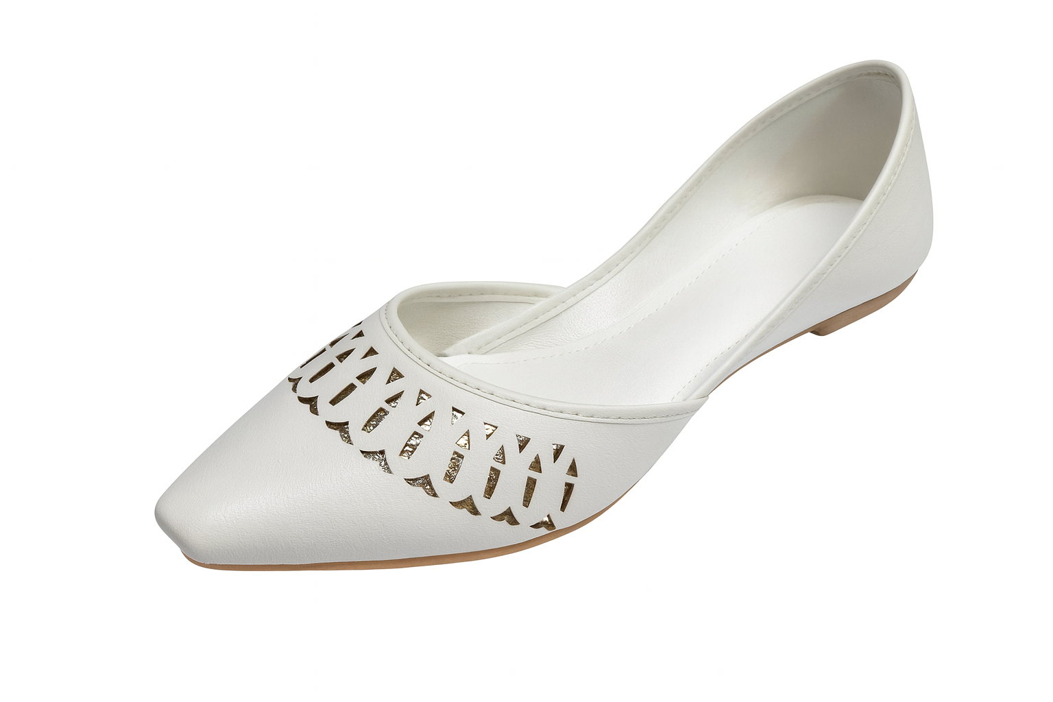 ZivaWalk Ivory Cutwork Traditional Flats offer a comfortable and stylish choice for everyday wear or special occasions. Made from durable synthetic leather, they feature detailed cutwork and a flat, cushioned sole with anti-slip grip for steady steps. These versatile flats pair well with both traditional and modern outfits, providing elegant support in every step.