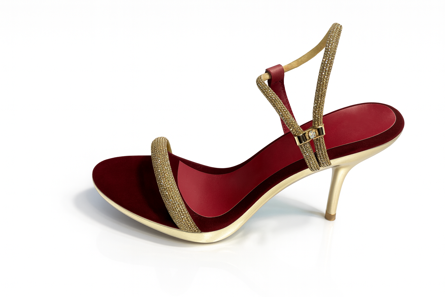 Maroon & Gold Crystal Strap Stiletto Sandals