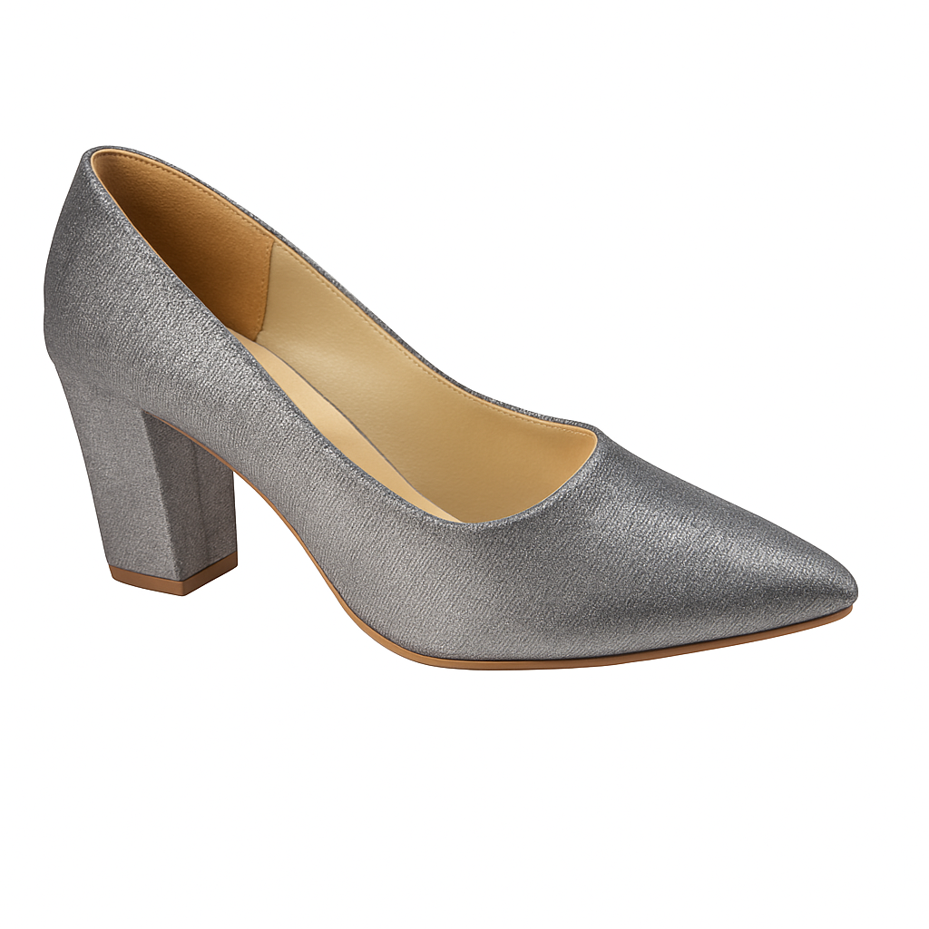 Step into style and comfort with ZivaWalk Metallic Silver Block Heels. These heels feature a sturdy 3.5-inch block heel and a pointed toe for a sleek look. Made with premium synthetic leather and a soft cushioned insole, they offer all-day comfort and a secure fit. Perfect for work, dinners, or special occasions, they add a modern, polished touch to any outfit.