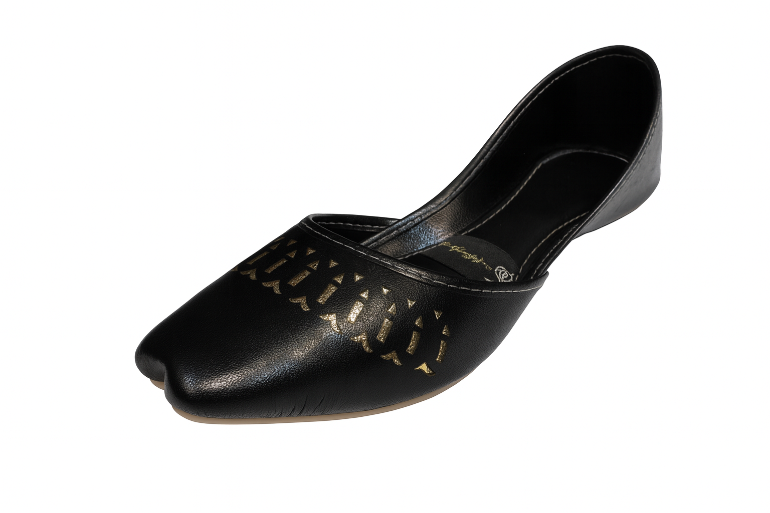 ZivaWalk Noir Cutwork Traditional Flats offer a stylish and comfortable option for any occasion. Made from premium synthetic leather in classic black, they feature delicate cutwork and a cushioned interior for all-day wear. The flat, anti-slip sole provides stability, while their design pairs well with both traditional and casual outfits. These flats help you step out with confidence and ease.