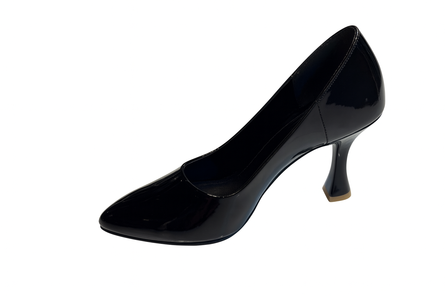 The Noir Glossy Sculpted Heels offer a sleek, black patent leather look with a stylish pointed toe. Their sculpted 3-inch heel balances comfort and elegance, suitable for work, weddings, or special events. With a secure fit and anti-slip sole, these heels complement sarees, gowns, and suits effortlessly for day-to-night wear.