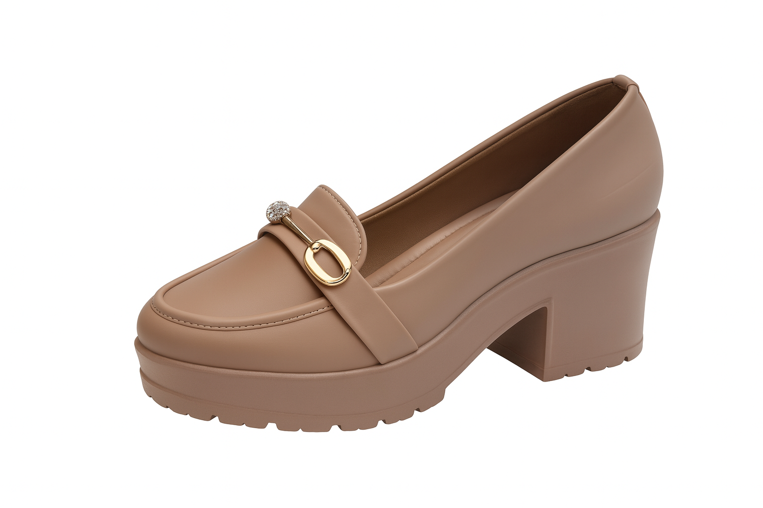 The ZivaWalk Nude Crystal Charm Block Loafers blend style and comfort with a soft nude design, golden buckle, and subtle crystal detail. Featuring a supportive 2.5-inch block heel and cushioned sole, they’re perfect for long wear. These loafers suit office days, dinners, and semi-formal occasions, pairing effortlessly with dresses or tailored pants to enhance your confident, polished look.