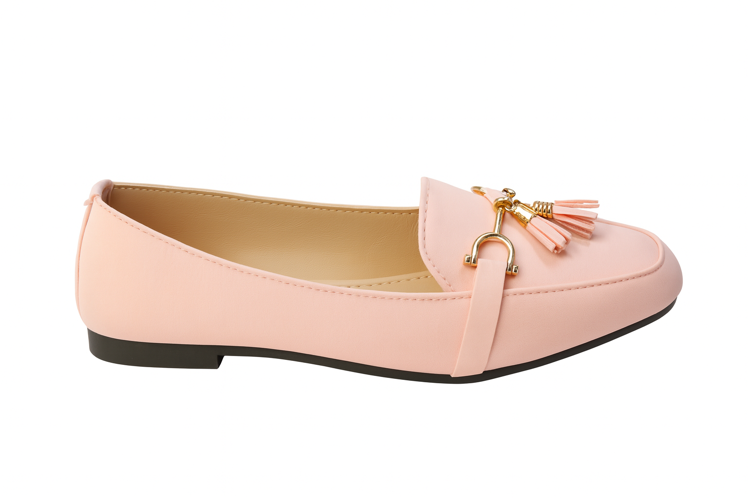 Experience comfort and style with the Peach Luxe Tassel Loafers from ZivaWalk. Featuring a soft peach color and golden tassel details, these loafers complement both casual and festive looks. Made from premium synthetic leather with a cushioned insole and anti-slip sole, they offer all-day comfort and practicality. The flat heel and true-to-size fit make them easy to wear for any occasion.