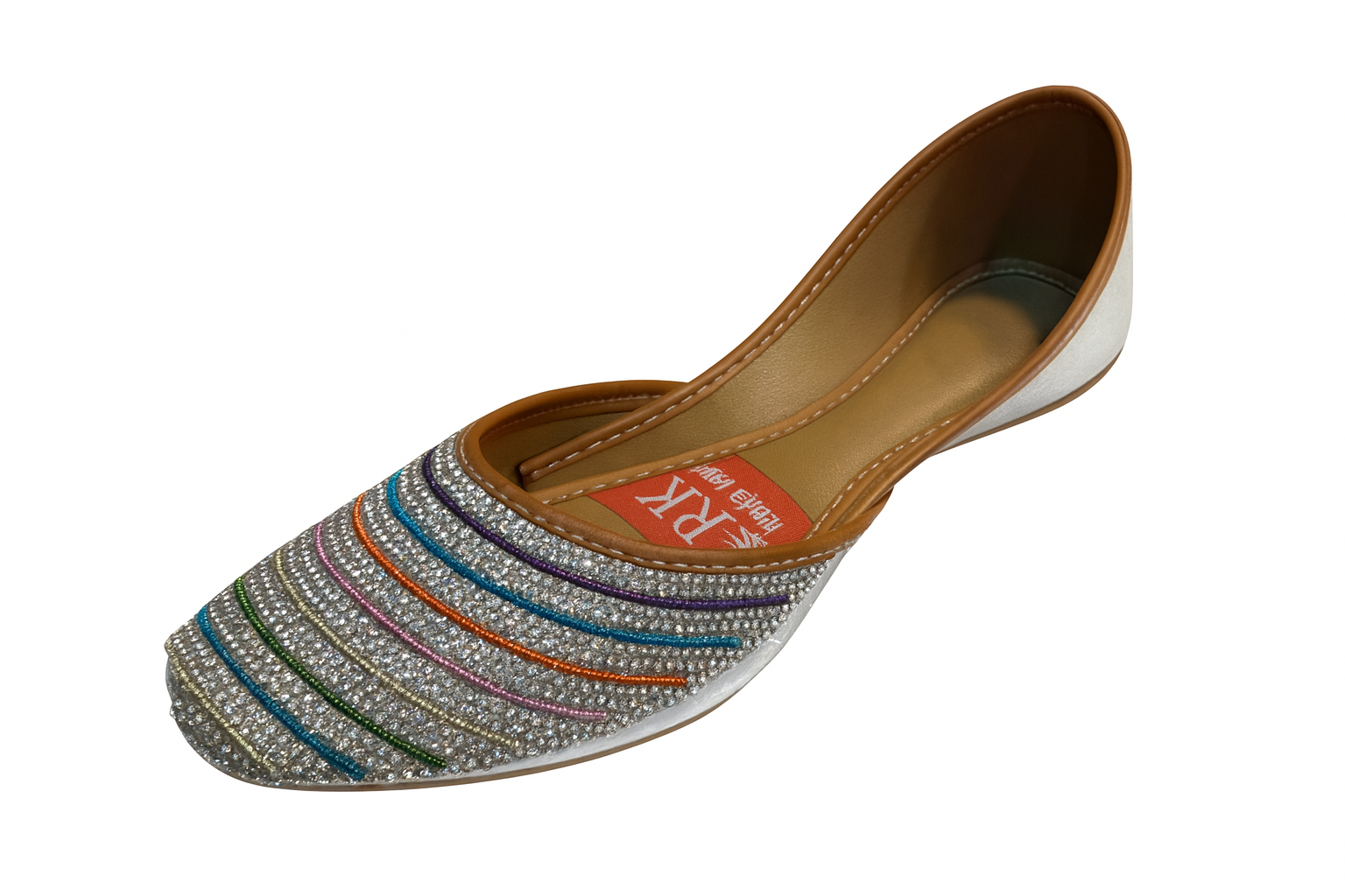 The Prism Sparkle Multicolor Jutti by ZivaWalk combines traditional charm with modern sparkle. Featuring soft cushioning and a flat, anti-slip sole, it offers comfort for all-day wear. Its vibrant multicolor design with crystal accents makes it perfect for weddings, festivals, or casual outings. Wear it confidently with both ethnic and casual outfits.