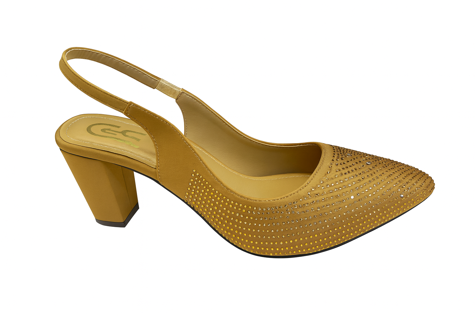 Step into comfort and style with the ZivaWalk Golden Rhinestone Slingback Block Heel Pumps. Featuring a secure slingback strap and a stable 3-inch block heel, these shoes offer a comfortable fit with a glamorous touch. The pointed toe and sparkling rhinestones add elegance, making them perfect for weddings, parties, and special occasions. Pair easily with traditional or evening wear to shine with timeless golden charm.