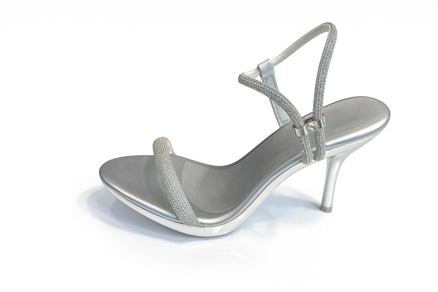Silver Crystal Strap Stiletto Sandals