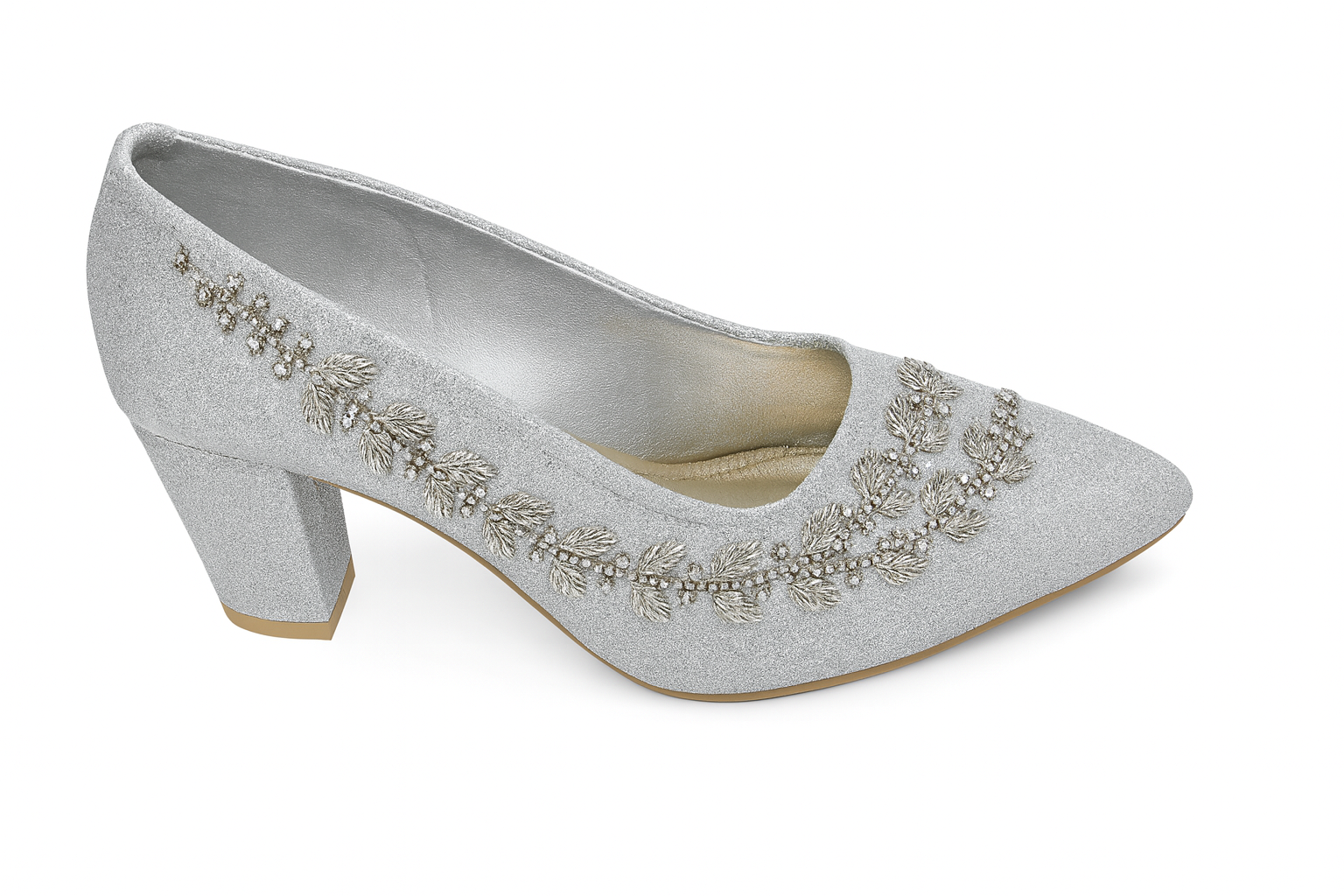 Step into elegance with ZivaWalk’s Silver Embellished Block Heels. These comfortable shoes feature a sparkling silver finish with delicate leaf embroidery and crystal accents. The pointed toe and sturdy 3-inch block heel offer style and stability for long events. With cushioned lining and an anti-slip sole, they ensure comfort and confidence at weddings, parties, or formal gatherings. Perfectly crafted to blend tradition with modern charm.