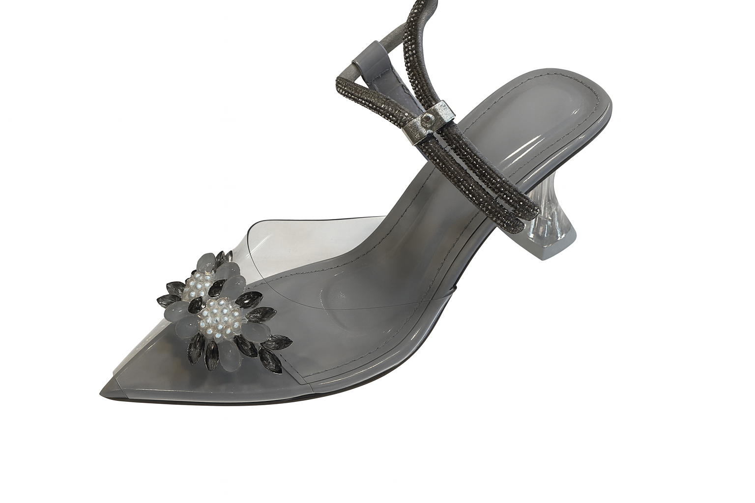 The ZivaWalk Smokey Crystal Embellished Heels feature a smokey grey tone with transparent block heels and dual rhinestone straps. Made from premium synthetic materials with crystal and pearl accents, they offer a comfortable fit and anti-slip sole. Ideal for special occasions, these heels combine style and elegance for confident, graceful steps.