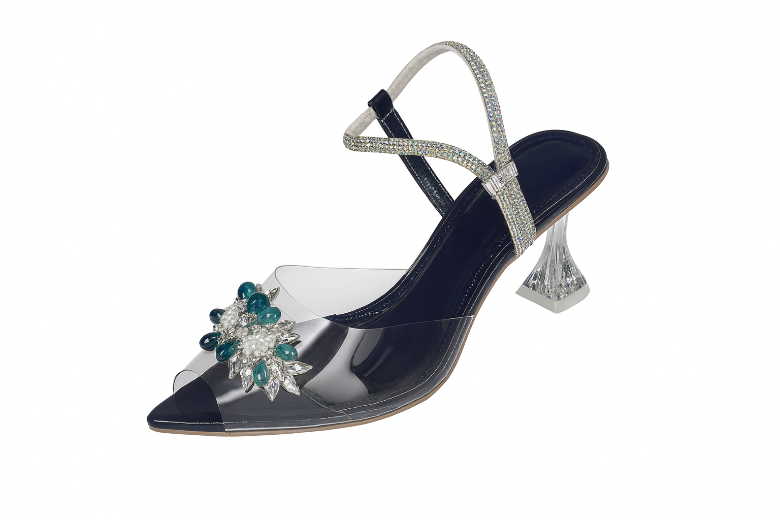 Step out with elegance in the ZivaWalk Teal Crystal Embellished Heels. These 3-inch transparent block heels feature dual rhinestone straps and a secure buckle for a comfortable fit. Made from quality materials with teal crystal details, they offer a non-slip sole and true-to-size comfort. Perfect for celebrations, evenings, and weddings, they add a radiant touch to your outfit.
