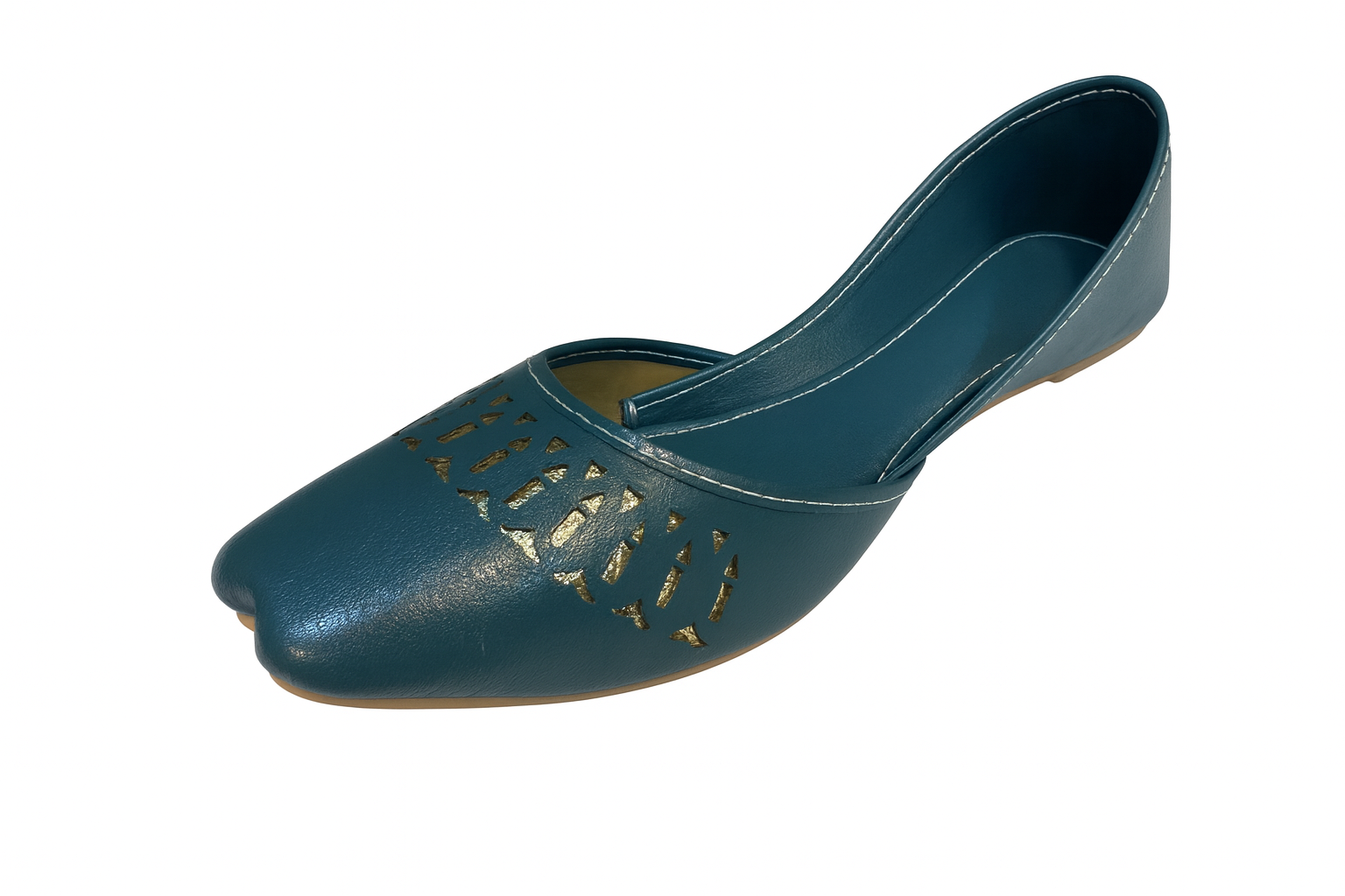 Brighten your wardrobe with the ZivaWalk Teal Cutwork Traditional Flats. These lightweight flats feature a teal synthetic leather upper with beautiful cutwork, offering comfort and style. The anti-slip sole ensures steady steps, while the classic khussa design suits both traditional and modern outfits. Ideal for everyday wear, festive events, or cultural gatherings, they pair well with ethnic or fusion looks. Enjoy confident, comfortable style with ZivaWalk.