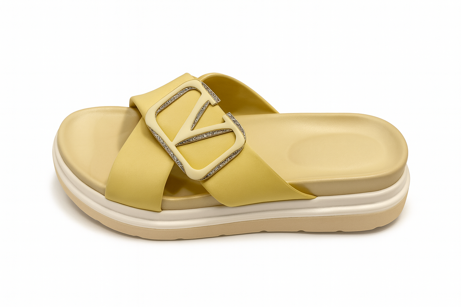 ZivaWalk’s Yellow Buckle Cross-Strap Comfort Sliders combine bright style with all-day comfort. Made with faux leather and a cushioned sole, they feature a bold crystal buckle and a lightweight, true-to-size fit. Perfect for casual outings, travel, or relaxed days, these sliders add a splash of color to any outfit while keeping your feet comfortable.